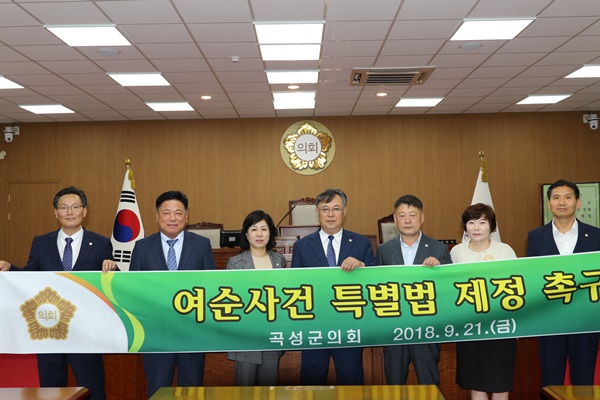 제231회 곡성군의회 (제1차 정례회) 폐회 / 심인식 의원 여순사건 특별법 제정 촉구 결의문 발의 (2018. 9. 21. / 본회의장)